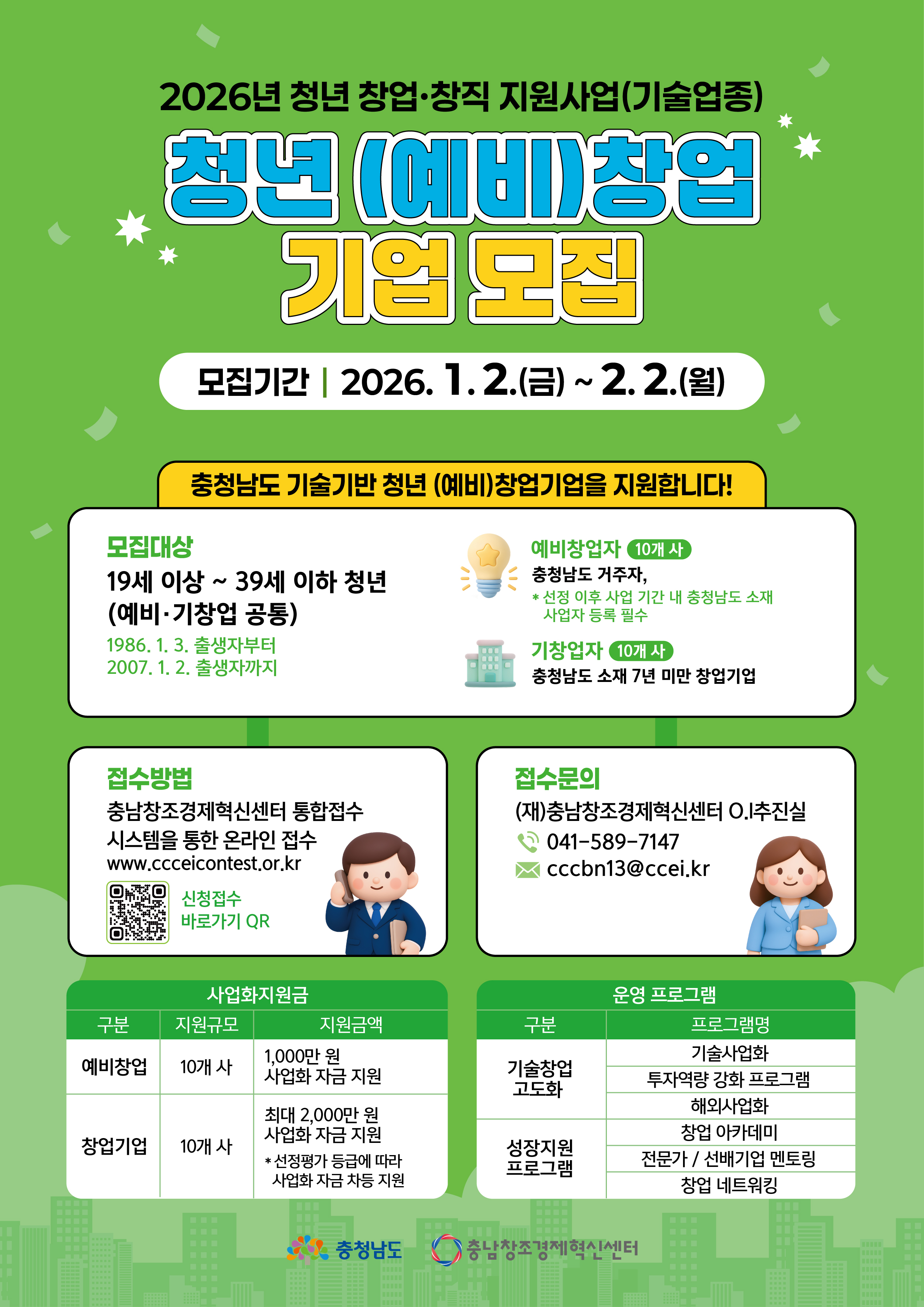 2026년 충남 청년 창업·창직 지원사업(기술업종) (예비)창업자 모집 공고